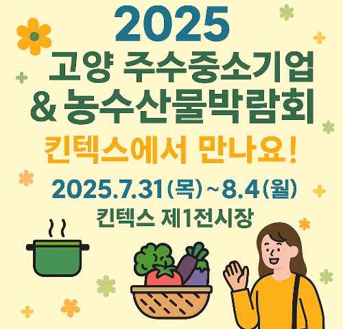 2025 고양 우수중소기업 & 농수산물박람회는 고양시가 주최하고 킨텍스가 주관하는 대규모 박람회예요. 행사에서는 우리나라 우수 중소기업의 다양한 제품과 전국 각지의 신선한 농수산물을 만나볼 수 있어요. 올해 행사는 7월 31일부터 8월 4일까지 총 5일간 열리며, 장소는 일산 킨텍스 제1전시장입니다.