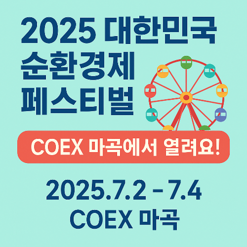 “이런 멋진 철학을 실천하고 배우는 자리!”라는 마음으로 기대하며 찾아간 2025 대한민국 순환경제 페스티벌은, 7월 2일(수)부터 4일(금)까지, 총 3일간 서울 강서구 COEX 마곡 1층 전시장에서 열립니다. 오전 10시부터 오후 5시(마지막 날은 오후 3시까지) 운영되며, 무엇보다 완전 무료 입장이라는 점이 방문하기 전부터 기대가 됩니다. 사전예약자에 한해 현장 경품 이벤트 우선 응모권이나 소정의 친환경 기념품 제공 등 추가 혜택이 주어질 예정이니 사전예약을 서두르시기 바랍니다.
